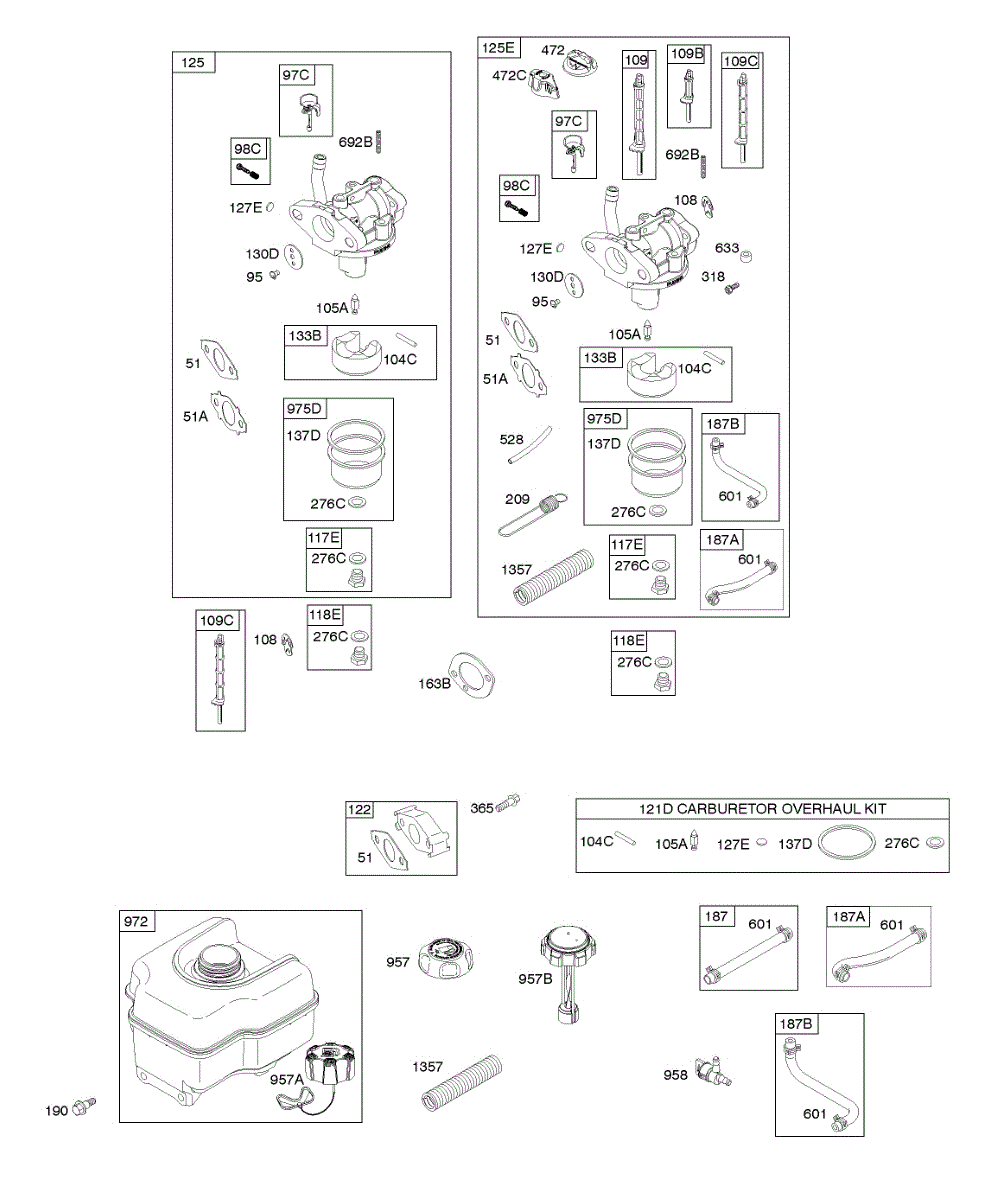 Parts for Briggs & Stratton 15C104-0022-E8: Carburetor, Fuel Supply Parts