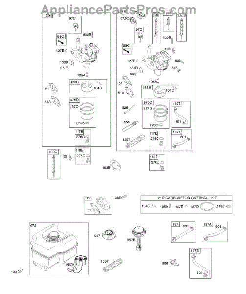 Parts for Briggs & Stratton 15C104-0662-E8: Carburetor, Fuel Supply Parts
