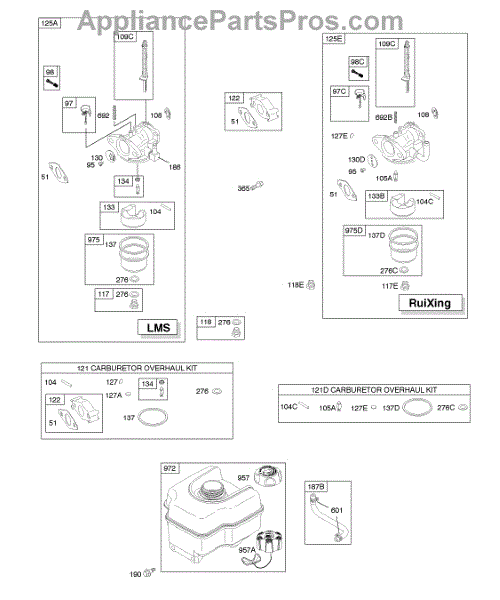 This replacement part is a carburetor overhaul kit. This kit includes multiple parts that are needed to rebuild or repair a damaged carburetor.Be sure to diagnose the issue before purchasing this kit to ensure that the needed parts are included. A damaged carburetor may cause hard starting or black smoke exhaust during use. Wear work gloves when working with the carburetor. The engine should be powered down and cooled off before starting this job.This is a genuine OEM replacement part manufactured by Midwest Engine. This part is sold individually.