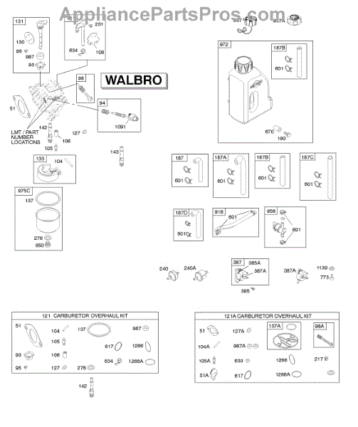Parts for Briggs & Stratton 219977-0139-B1: Carburetor, Fuel Supply, Kit - Carburetor Overhaul Parts