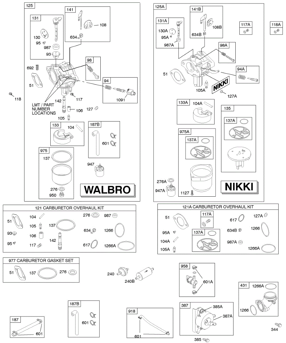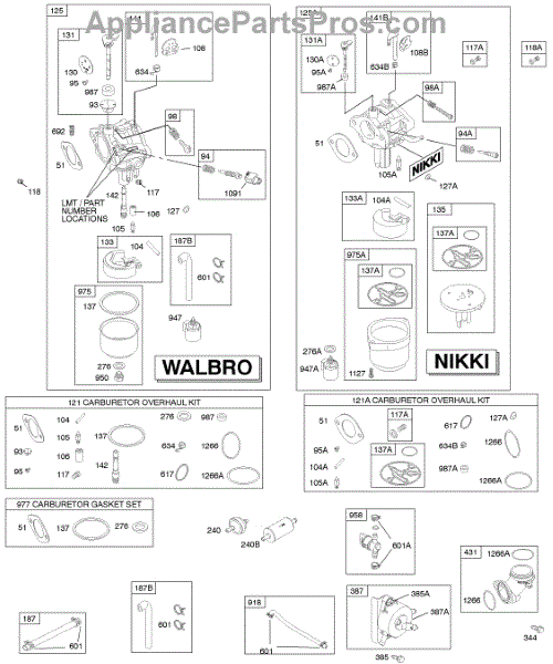 Parts for Briggs & Stratton 280H07-0402-E1: Carburetor, Fuel Supply, Kit - Carburetor Overhaul Parts