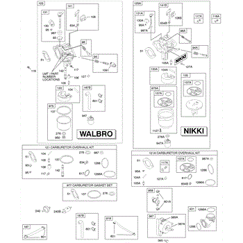 Parts for Briggs & Stratton 285H07-0028-E1: Carburetor, Fuel Supply, Kit - Carburetor Overhaul Parts
