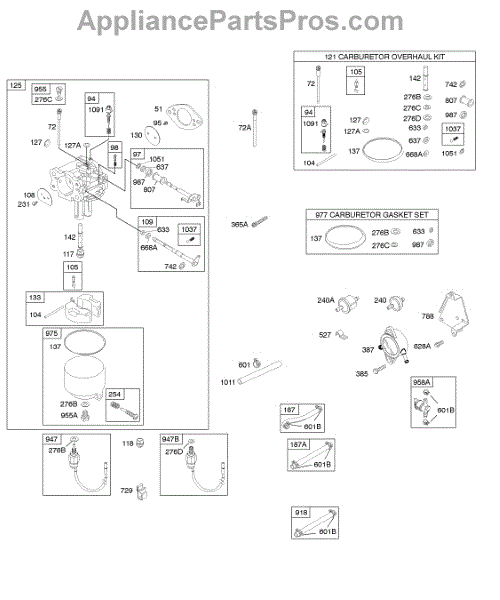 Parts for Briggs & Stratton 303777-1166-E1: Carburetor, Fuel Supply, Kit - Carburetor Overhaul Parts