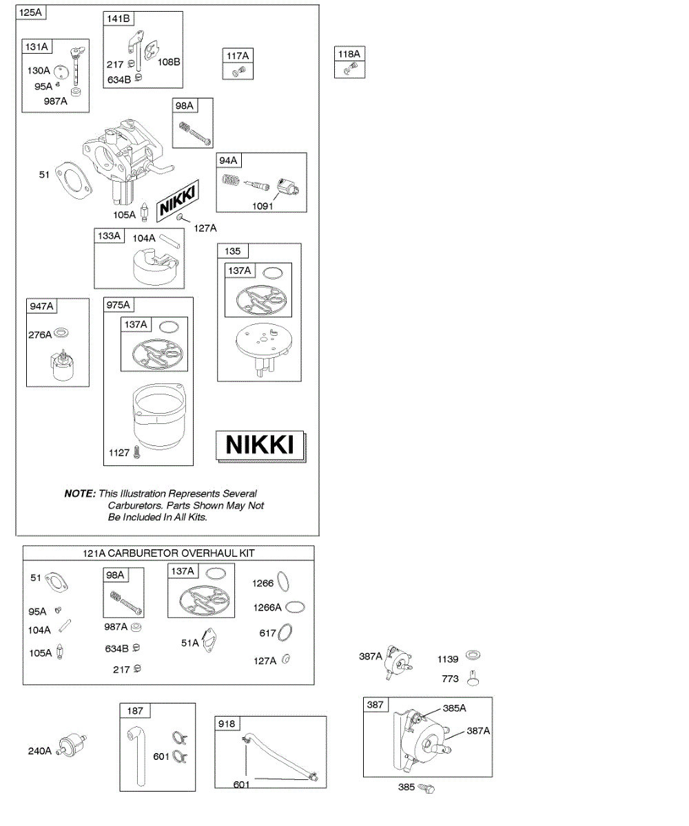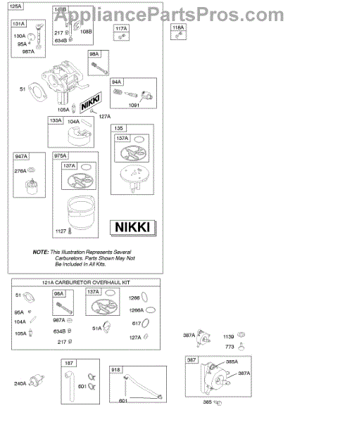 Parts for Briggs & Stratton 31N807-0440-E1: Carburetor, Fuel Supply, Kit - Carburetor Overhaul Parts