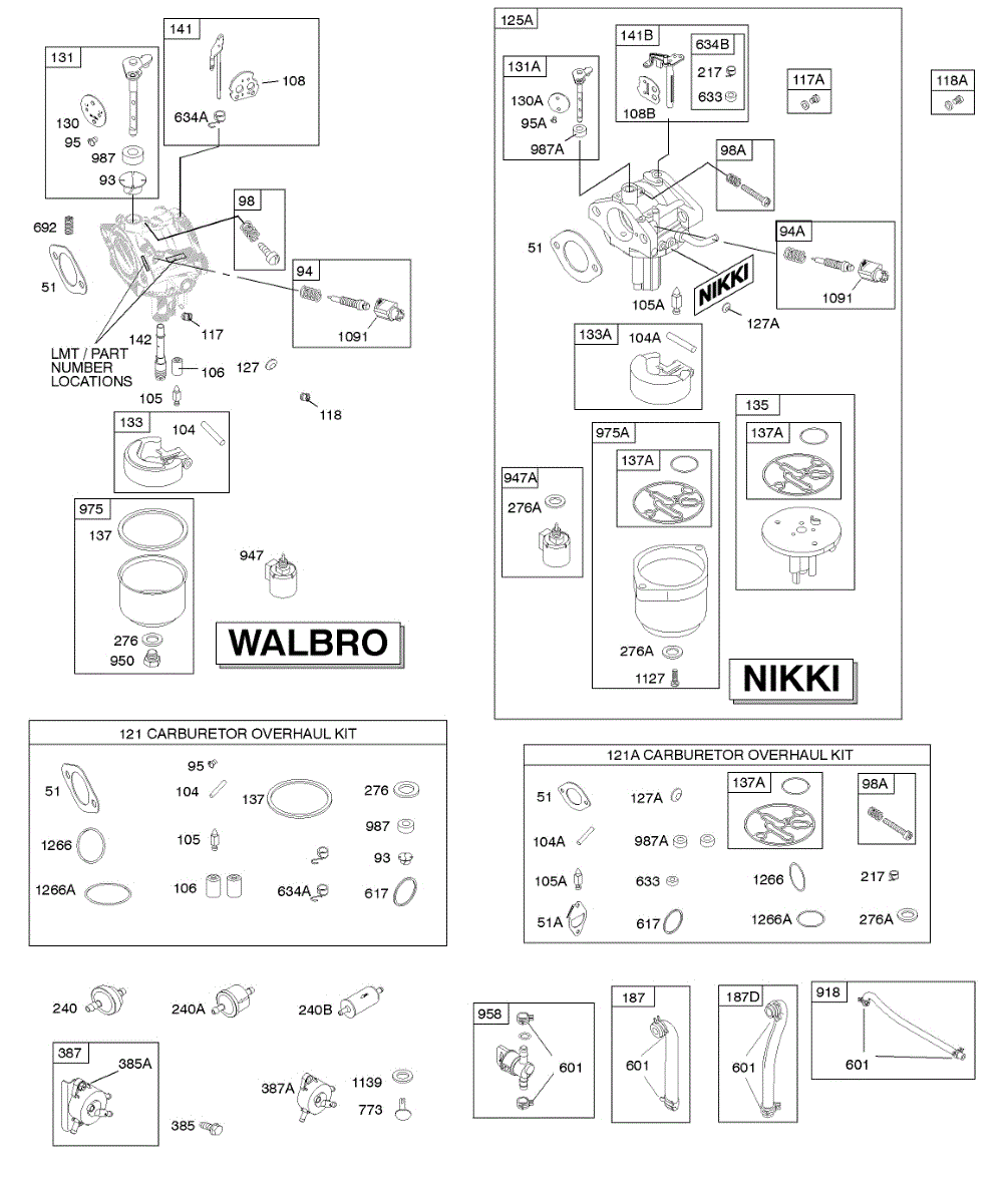 Complete carburetor overhaul kit for small engines. Includes gaskets, seals, and components to restore proper fuel delivery. Replace when experiencing hard starts or rough idling.