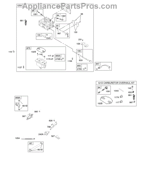 Parts for Briggs & Stratton 381447-0135-E1: Carburetor, Fuel Supply, Kit - Carburetor Overhaul Parts