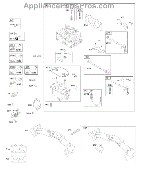 Parts for Briggs & Stratton 386777-0036-E1: Carburetor, Fuel Supply, Intake Manifold, Parts