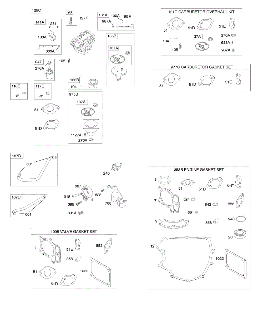 Parts for Briggs & Stratton 404577-0264-E1: Carburetor, Fuel Supply, Gasket Set - Engine, Gasket Set - Valve, Kit - Carburetor Overhaul Parts