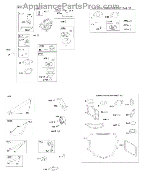 Parts for Briggs & Stratton 441577-0442-E1: Carburetor, Fuel Supply, Gasket Set - Engine, Kit - Carburetor Overhaul Parts
