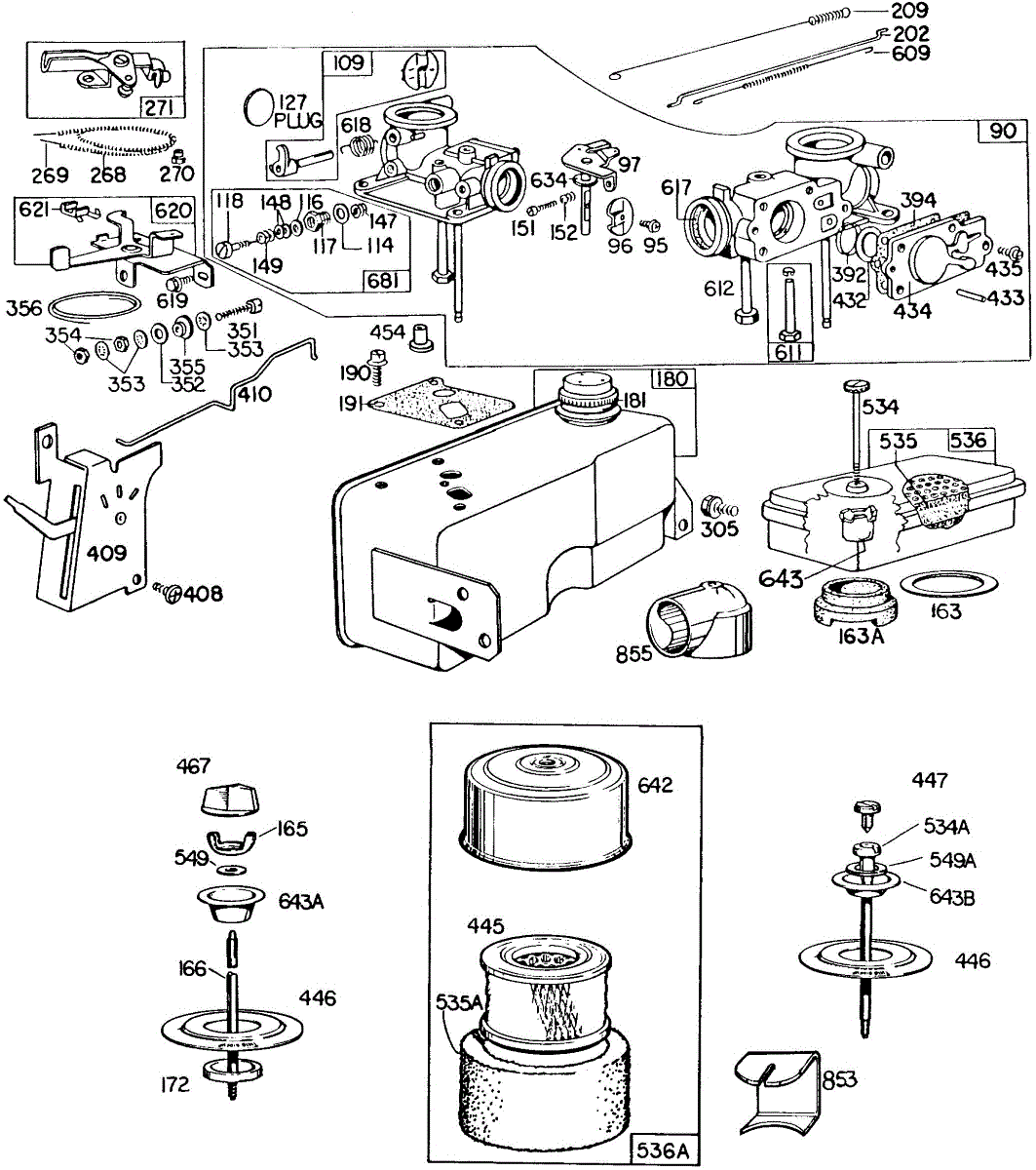 Parts for Briggs & Stratton 130902-0521-99: Carburetor, Fueltank, A / C Parts