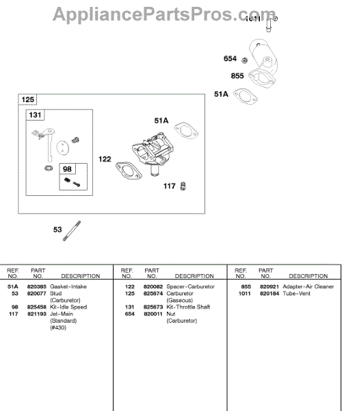 Parts for Briggs & Stratton 581447-0375-E2: Carburetor, Gaseous Parts