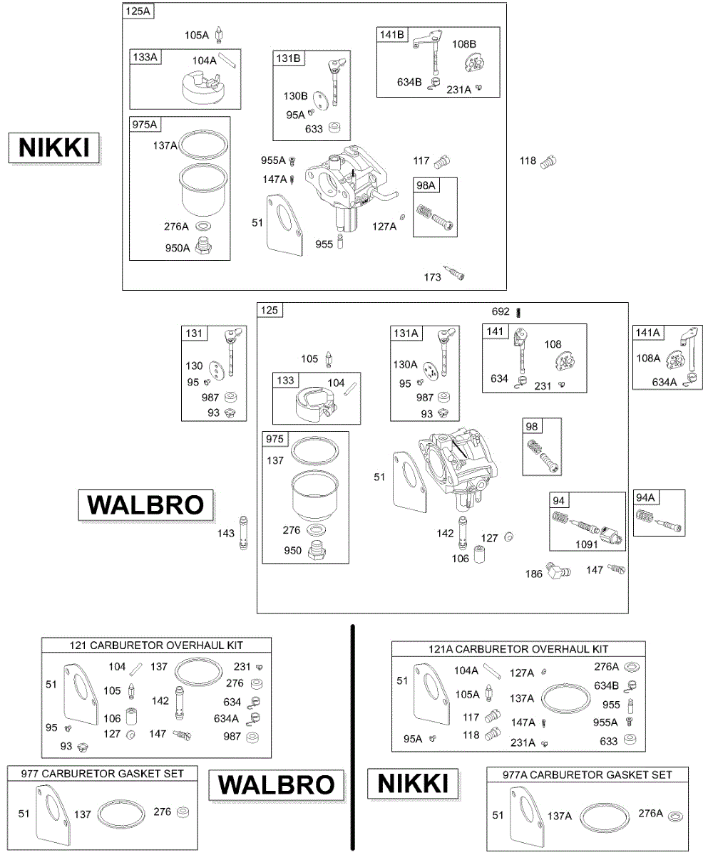 Parts for Briggs & Stratton 28M707-1129-E1: Carburetor, Gasket Kits Parts