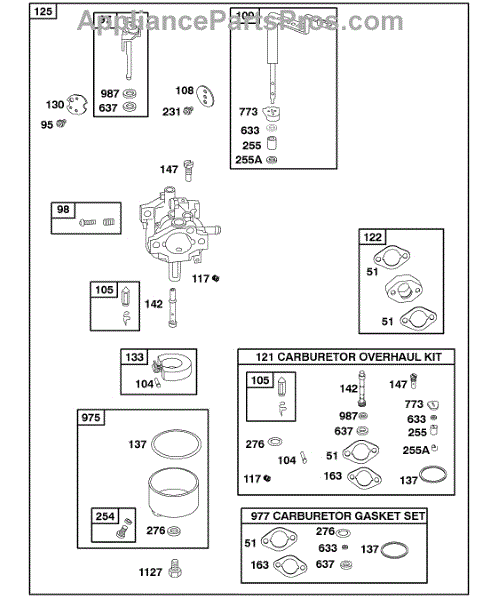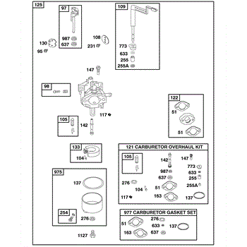 Parts for Briggs & Stratton 118437-0128-B1: Carburetor, Gasket Set - Carburetor, Kit - Carburetor Overhaul Parts