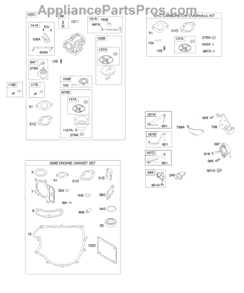 Parts for Briggs & Stratton 441677-0754-B1: Carburetor, Gasket Set - Engine, Kit - Carburetor Overhaul Parts