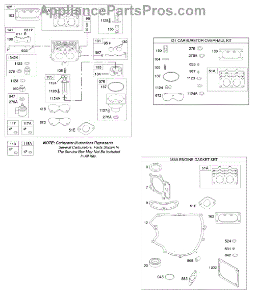 Parts for Briggs & Stratton 441777-0119-B1: Carburetor, Gasket Set - Engine, Kit - Carburetor Overhaul Parts