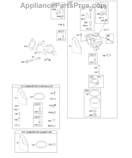 Parts for Briggs & Stratton 197707-0120-E1: Carburetor, Gaskets Parts