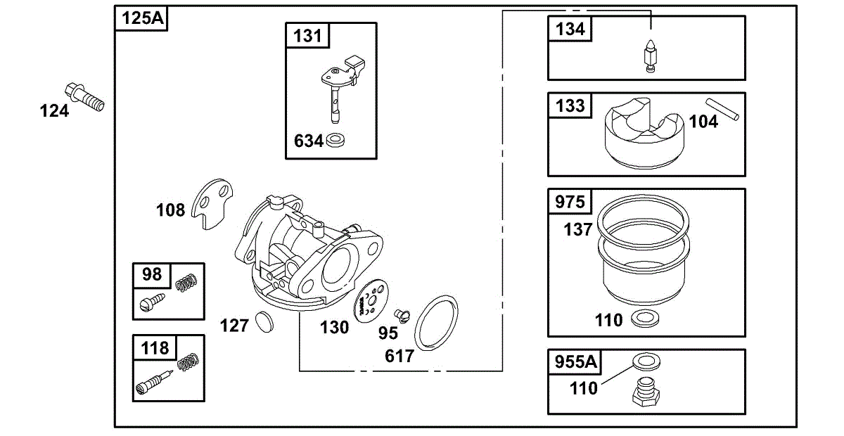 Parts for Briggs & Stratton 121782-0213-01: Carburetor Group Parts