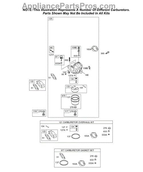 Parts for Briggs & Stratton 113452-0049-E1: Carburetor Group, Kits / Gasket Sets - Carburetor Parts