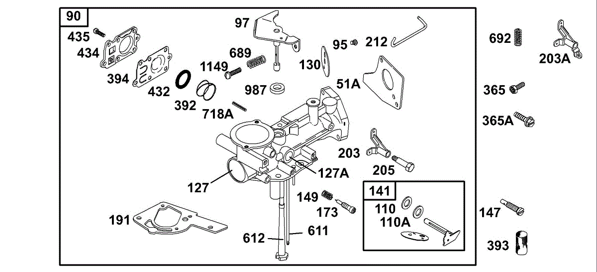 Parts for Briggs & Stratton 136217-0142-01: Carburetor Group Parts