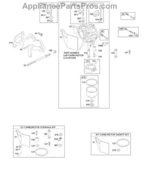 Parts for Briggs & Stratton 197412-0073-01: Carburetor Group Parts