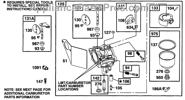 Parts for Briggs & Stratton 19A402-0199-01: Carburetor Group Parts