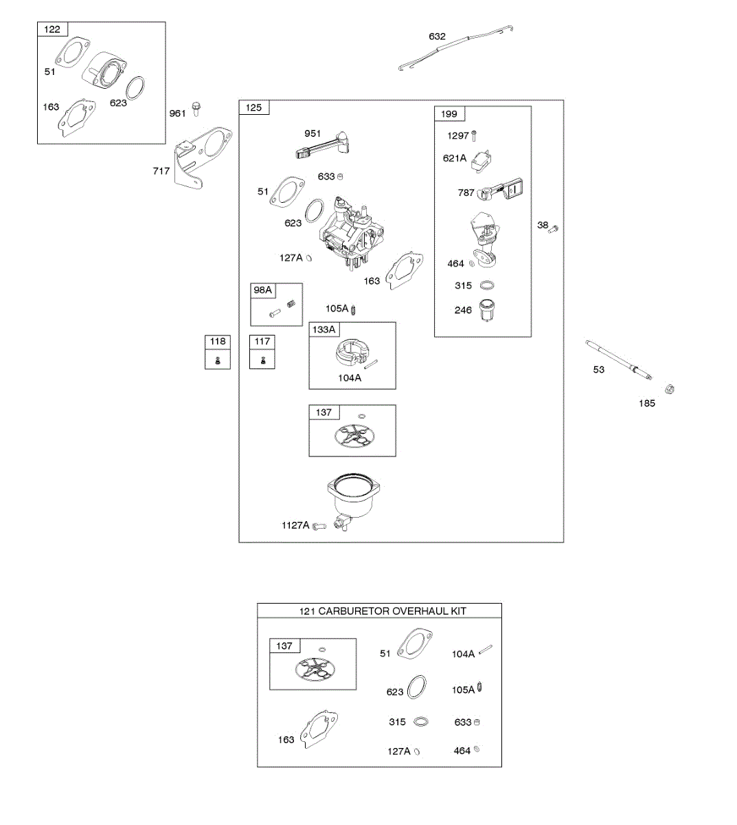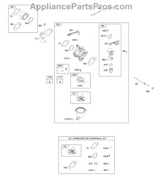 Parts for Briggs & Stratton 19H132-0116-B1: Carburetor, Kit - Carburetor Overhaul Parts