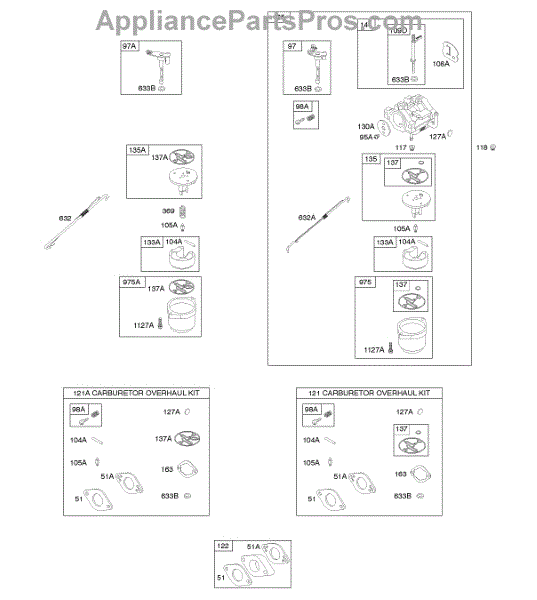 Parts for Briggs & Stratton 201332-0152-B1: Carburetor, Kit - Carburetor Overhaul Parts