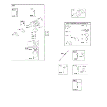 Rebuild your lawn equipment engine carburetor with this complete overhaul kit. Includes diaphragm, gaskets, and components to restore fuel delivery.
