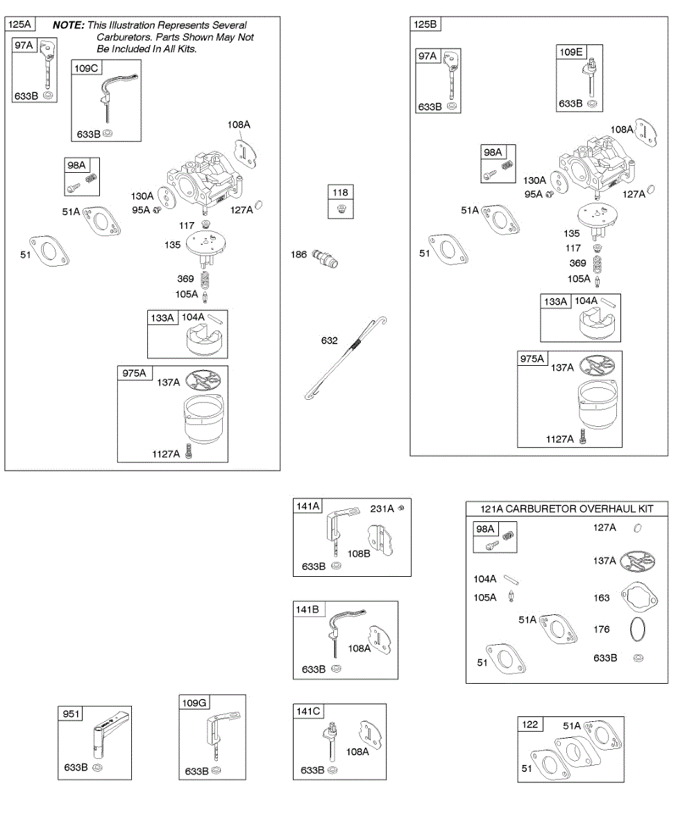 Parts for Briggs & Stratton 203432-0131-B1: Carburetor, Kit - Carburetor Overhaul Parts