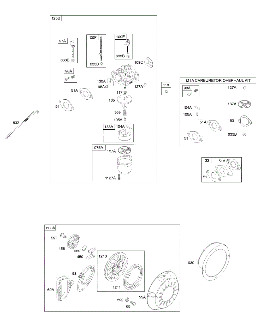 This is a carburetor overhaul kit. This kit contains all of the needed components to rebuild the carburetor for lawn and garden equipment engines. A carburetor mixes fuel and air before delivering it to the engine. The diaphragm helps regulate the amount of fuel that is in this mixture. The gaskets create a seal that keeps unnecessary air out so that the engine works properly.A carburetor overhaul kit is needed to fix problems including worn-out gaskets or diaphragms, gas or air leaks, and sluggish performance. Signs that there are carburetor issues include engine roughness when it's at idle, engine vibrations, misfires, or it hesitates under acceleration. Signs that the carburetor diaphragm has gone bad include the engine not starting, cutting off while running, producing excessive smoke, or revving on its own. All of these signs indicate that a carburetor overhaul kit is needed.This part is a genuine Midwest Engine part and is an OEM part sourced directly from the manufacturer and it is sold individually. This kit is compatible with lawn tractors manufactured by Midwest Engine and Briggs & Stratton.