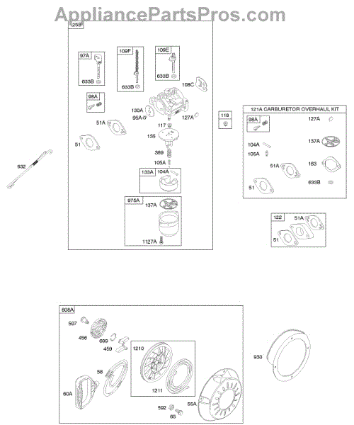 Parts for Briggs & Stratton 20B437-0112-E1: Carburetor, Kit - Carburetor Overhaul, Rewind Starter Parts