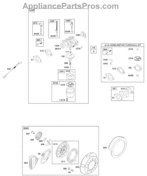 Parts for Briggs & Stratton 20C414-0372-E1: Carburetor, Kit - Carburetor Overhaul, Rewind Starter Parts