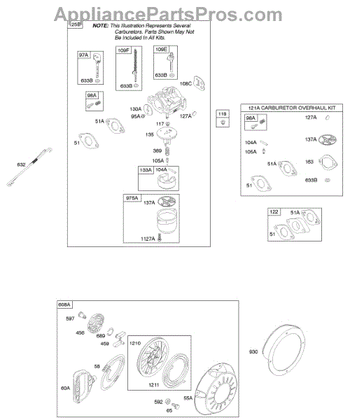 Parts for Briggs & Stratton 20D414-0111-E1: Carburetor, Kit - Carburetor Overhaul, Rewind Starter Parts