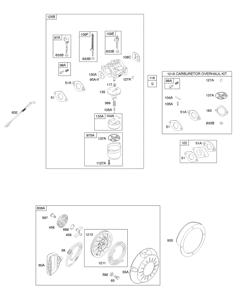 This is a carburetor overhaul kit. This kit contains all of the needed components to rebuild the carburetor for lawn and garden equipment engines. A carburetor mixes fuel and air before delivering it to the engine. The diaphragm helps regulate the amount of fuel that is in this mixture. The gaskets create a seal that keeps unnecessary air out so that the engine works properly.A carburetor overhaul kit is needed to fix problems including worn-out gaskets or diaphragms, gas or air leaks, and sluggish performance. Signs that there are carburetor issues include engine roughness when it's at idle, engine vibrations, misfires, or it hesitates under acceleration. Signs that the carburetor diaphragm has gone bad include the engine not starting, cutting off while running, producing excessive smoke, or revving on its own. All of these signs indicate that a carburetor overhaul kit is needed.This part is a genuine Midwest Engine part and is an OEM part sourced directly from the manufacturer and it is sold individually. This kit is compatible with lawn tractors manufactured by Midwest Engine and Briggs & Stratton.