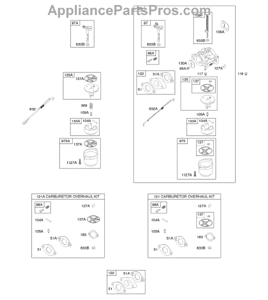 Parts for Briggs & Stratton 20P237-0126-E1: Carburetor, Kit - Carburetor Overhaul Parts