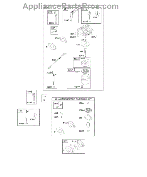 This is a carburetor overhaul kit. This kit contains all of the needed components to rebuild the carburetor for lawn and garden equipment engines. A carburetor mixes fuel and air before delivering it to the engine. The diaphragm helps regulate the amount of fuel that is in this mixture. The gaskets create a seal that keeps unnecessary air out so that the engine works properly.A carburetor overhaul kit is needed to fix problems including worn-out gaskets or diaphragms, gas or air leaks, and sluggish performance. Signs that there are carburetor issues include engine roughness when it's at idle, engine vibrations, misfires, or it hesitates under acceleration. Signs that the carburetor diaphragm has gone bad include the engine not starting, cutting off while running, producing excessive smoke, or revving on its own. All of these signs indicate that a carburetor overhaul kit is needed.This part is a genuine Midwest Engine part and is an OEM part sourced directly from the manufacturer and it is sold individually. This kit is compatible with lawn tractors manufactured by Midwest Engine and Briggs & Stratton.