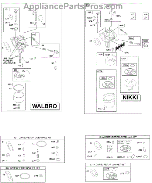Parts for Briggs & Stratton 218807-0112-E1: Carburetor, Kit - Carburetor Overhaul Parts