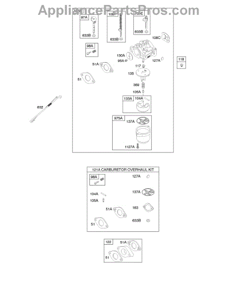 This is a carburetor overhaul kit. This kit contains all of the needed components to rebuild the carburetor for lawn and garden equipment engines. A carburetor mixes fuel and air before delivering it to the engine. The diaphragm helps regulate the amount of fuel that is in this mixture. The gaskets create a seal that keeps unnecessary air out so that the engine works properly.A carburetor overhaul kit is needed to fix problems including worn-out gaskets or diaphragms, gas or air leaks, and sluggish performance. Signs that there are carburetor issues include engine roughness when it's at idle, engine vibrations, misfires, or it hesitates under acceleration. Signs that the carburetor diaphragm has gone bad include the engine not starting, cutting off while running, producing excessive smoke, or revving on its own. All of these signs indicate that a carburetor overhaul kit is needed.This part is a genuine Midwest Engine part and is an OEM part sourced directly from the manufacturer and it is sold individually. This kit is compatible with lawn tractors manufactured by Midwest Engine and Briggs & Stratton.