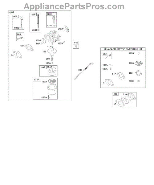Parts for Briggs & Stratton 21C314-0117-E1: Carburetor, Kit - Carburetor Overhaul Parts