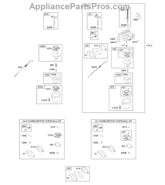 Parts for Briggs & Stratton 21Z114-0110-E1: Carburetor, Kit - Carburetor Overhaul Parts
