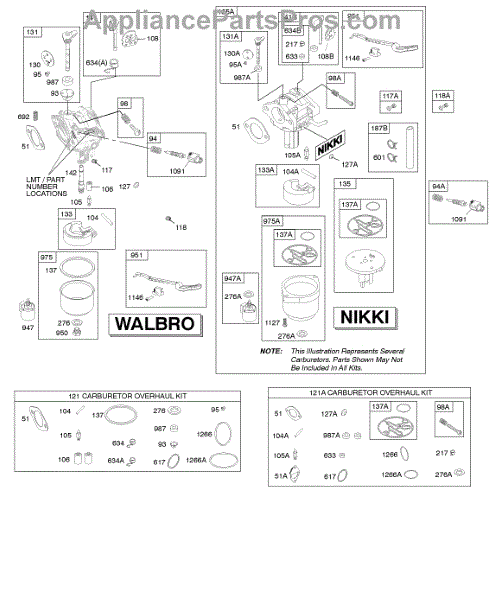 Parts for Briggs & Stratton 31C707-1429-B1: Carburetor, Kit - Carburetor Overhaul Parts