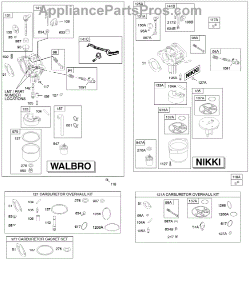 Parts for Briggs & Stratton 31F707-0130-E1: Carburetor, Kit - Carburetor Overhaul Parts