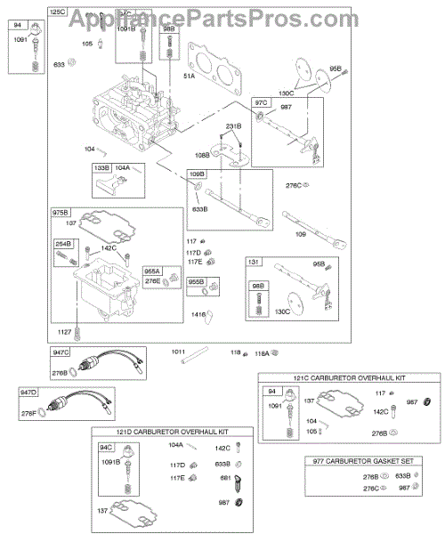 Parts for Briggs & Stratton 351777-0044-02: Carburetor, Kit - Carburetor Overhaul Parts