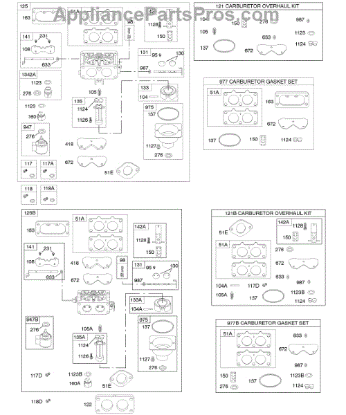 Parts for Briggs & Stratton 405777-0131-E1: Carburetor, Kit - Carburetor Overhaul Parts