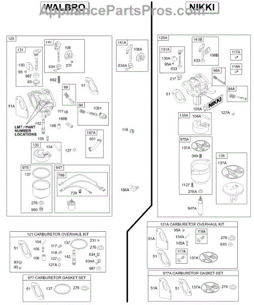 Parts for Briggs & Stratton 312777-0127-E1: Carburetor, Kit / Gasket Sets - Carburetor Parts