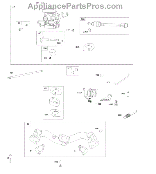 Parts for Briggs & Stratton 389575-0001-E1: Carburetor / Mixer, Intake Manifold, Stepper Motor Parts