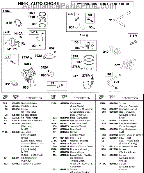Parts for Briggs & Stratton 583447-0317-E2: Carburetor, Nikki Auto Choke Parts