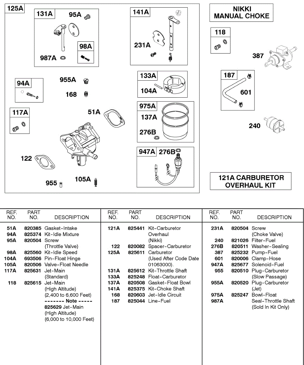 Parts for Briggs & Stratton 430447-0305-E2: Carburetor, Nikki Manual Choke Parts