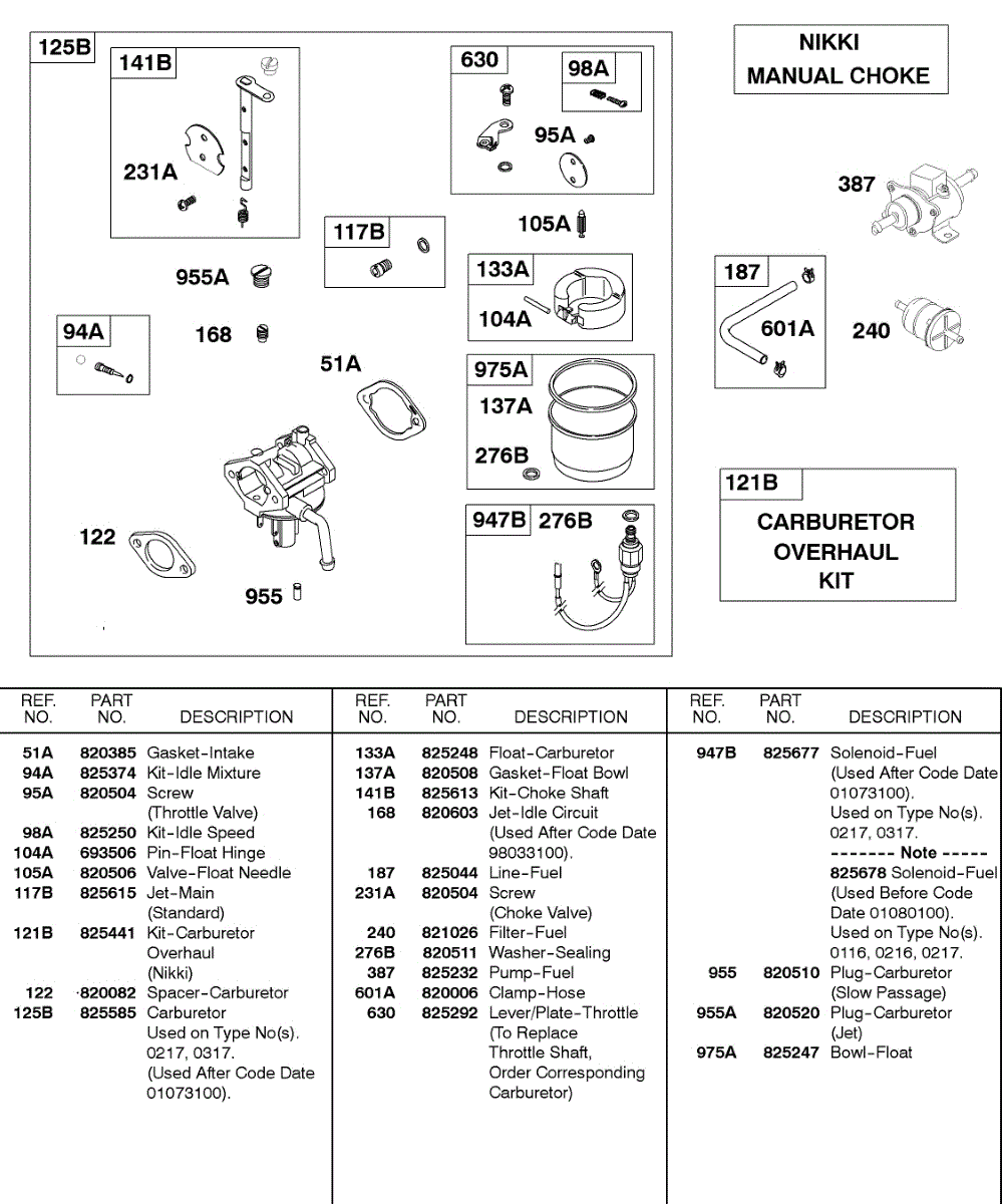 Parts for Briggs & Stratton 433447-0215-E2: Carburetor, Nikki Manual Choke Parts