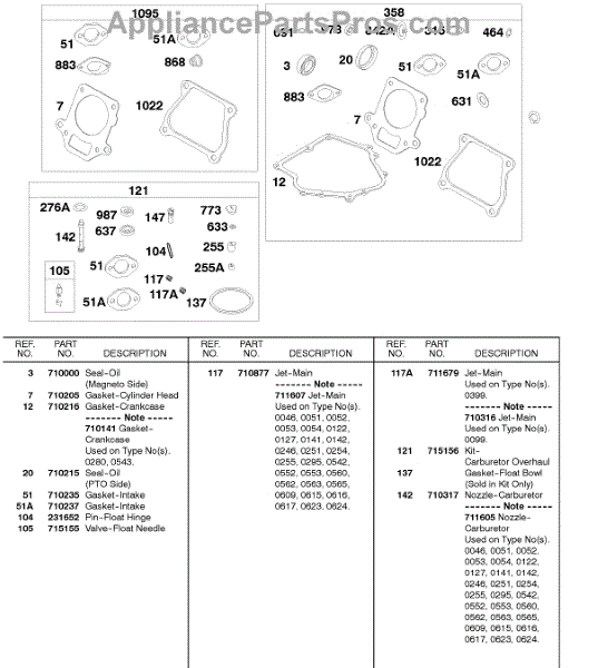 Parts for Briggs & Stratton 185432-0103-01: Carburetor Overhaul Kit, Engine / Valve Gasket Sets Parts